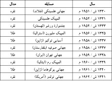 در 1335 ش، تختی پس از کسب مدال طلای المپیک ملبورن (استرالیا) بزرگترین قهرمان ورزش ایران شناخته شد (فاطمینویسی، 24- 25). او در فاصلۀ سالهای 1335-1337 ش (3 سال پیدرپی) توانست بازوبند پهلوانی ایران را به دست آورد و صاحب ضرب و زنگ (در زورخانهها) شود (عباسی، 1 / 492).